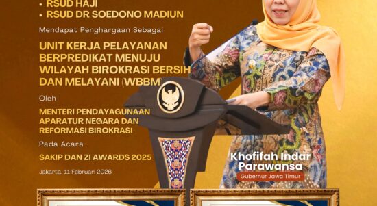 Dua RSUD Pemprov Jatim Sabet Predikat Wilayan Birokrasi Bersih Melayani 2025 dari Kementerian PANRB, Gubernur Khofifah Tegaskan Perkuat Komitmen Birokrasi Bersih dan Pelayanan Kesehatan Transparan