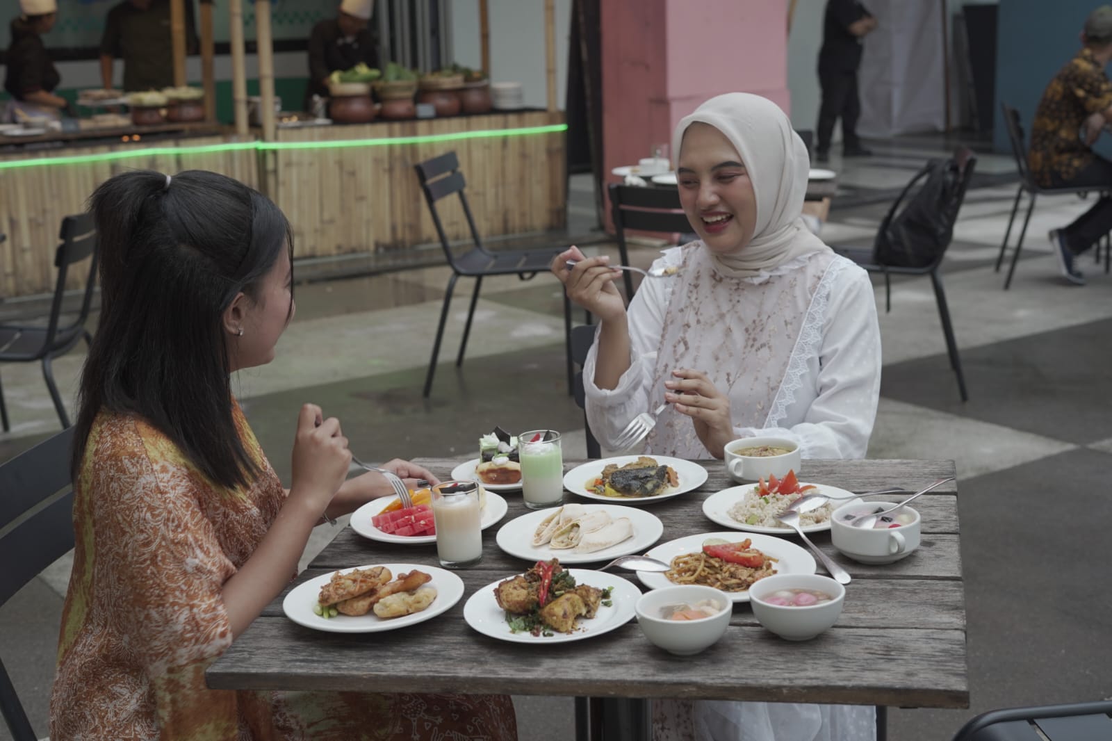 Suasana berbuka semakin semarak dengan kehadiran live cooking station, di mana para tamu dapat menyaksikan langsung proses pengolahan hidangan favorit mereka secara fresh dan menggugah selera. Pengalaman interaktif ini memberikan sensasi tersendiri bagi pencinta kuliner.