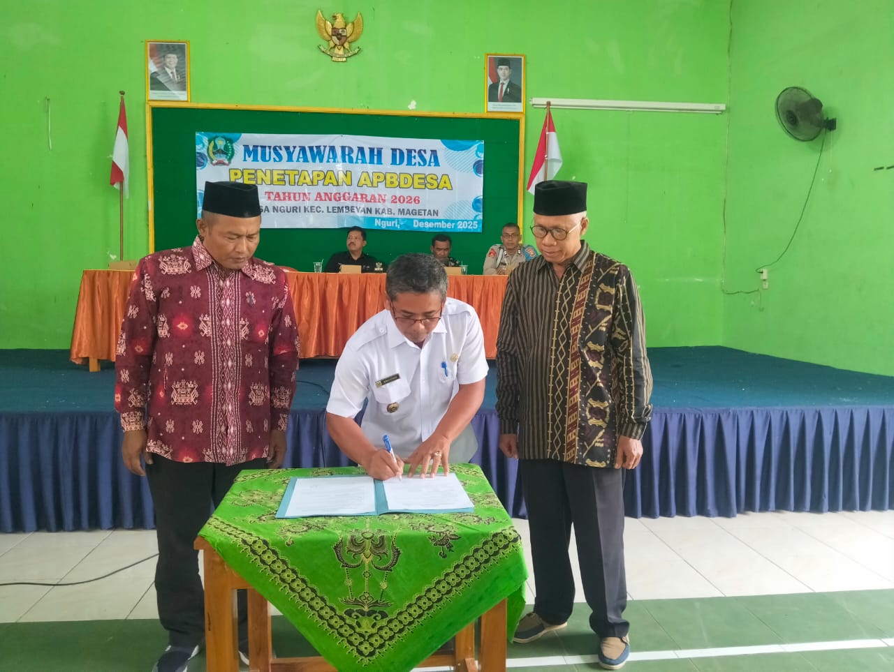 Media Central Magetan, Bertempat di gedung balai desa setempat pada Rabu (31/12/2025) siang, Musyawarah Desa tentang Penetapan APBDes Tahun Anggaran 2026, Pemerintah Desa Nguri Kecamatan Lembeyan Kabupaten Magetan Jatim dilaksanakan.
