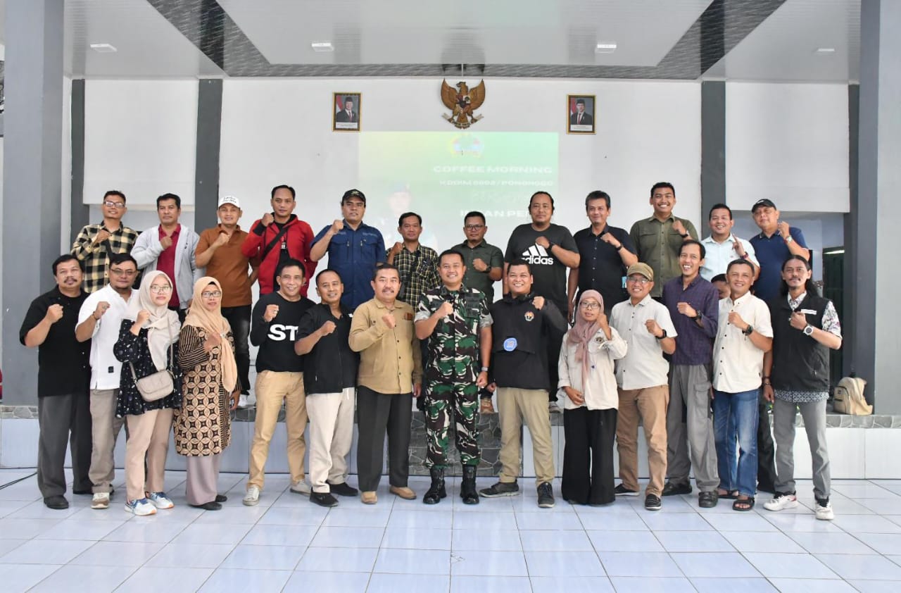 Media Central Ponorogo,-Komandan Kodim 0802/Ponorogo Letkol Arh Farauk Saputra hari ini mengadakan acara Coffee Morning bersama para wartawan / insan pers wilayah Kabupaten Ponorogo, Selasa (09/12/2025).