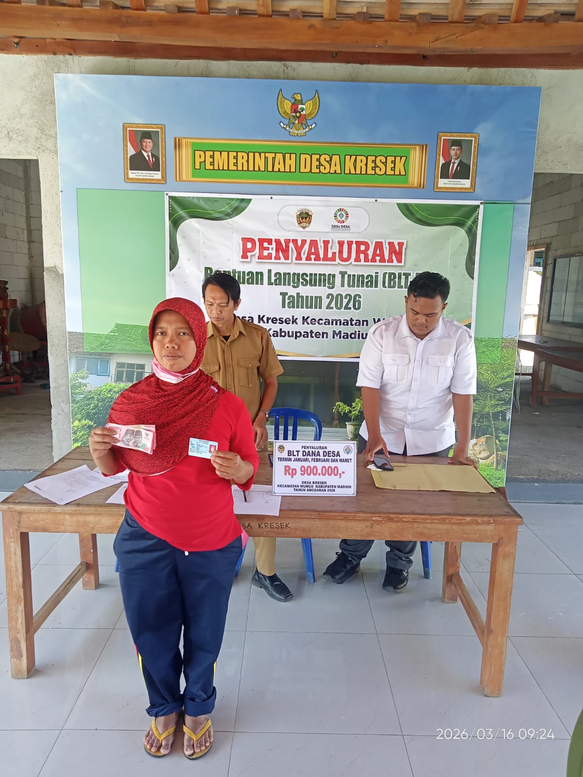 Pemerintah Desa Kresek telah menyalurkan Bantuan Sosial BLT – DD 2026, sebesar Rp 900,000 per KPM, dari Program Bantuan Langsung Tunai. Kegiatan penyaluran bantuan ini dilaksanakan secara langsung di gedung balai desa setempat pada Senin (16/3/2026).