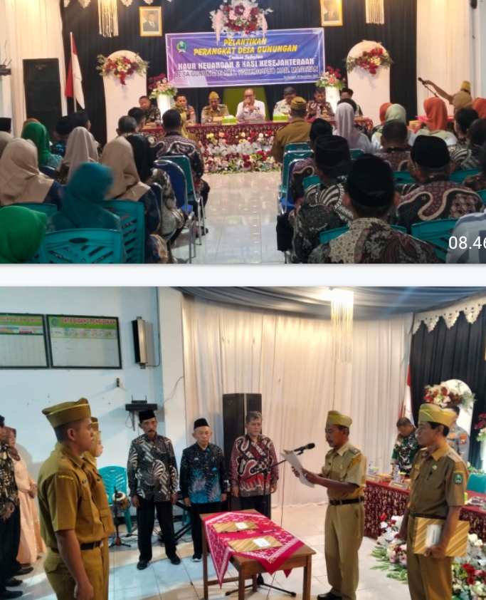 Serta dilanjutkan dengan pengambilan sumpah jabatan, oleh saudari ILMA BAQIYATUS SHOLICHAN sebagai Perangkat Desa Kaur Keuangan, dan saudara DIMAS ARMY SAPUTRA sebagai Perangkat Desa Kasi Kesejahteraan. Dengan pelaksanaan pelantikannya secara langsung dilantik oleh Kepala Desa Gunungan.