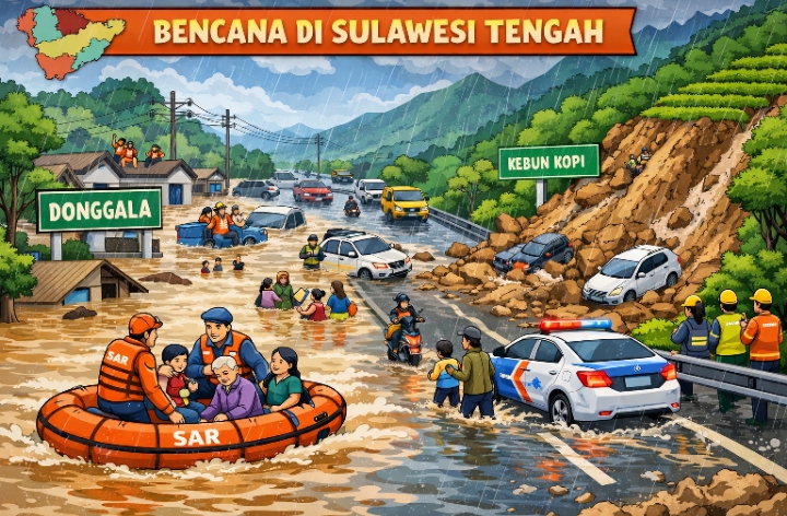 Donggala, Sulawesi Tengah – Jalan nasional yang melintasi kawasan kebun kopi di Kabupaten Donggala Minggu kemarin kembali mengalami longsor saat hujan deras mengguyur wilayah tersebut. Kepala Desa Nopabomba, Kecamatan Tanatovea, Idral, mengimbau masyarakat khususnya para pengguna jalan agar meningkatkan kewaspadaan ketika melintas di jalur rawan tersebut.