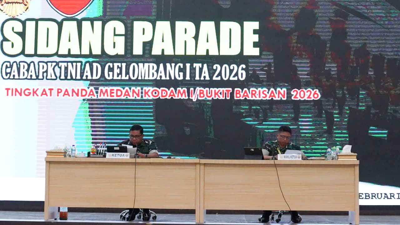 Media Central, MEDAN – Kepala Staf Kodam (Kasdam) I/Bukit Barisan Brigjen TNI Deki Santoso Pattinaya memimpin Sidang Parade Penerimaan Calon Bintara Prajurit Karier (Caba PK) TNI Angkatan Darat Gelombang I Tahun Anggaran 2026 tingkat Panitia Daerah (Panda) Medan di Gedung Balai Prajurit Makodam I/BB, Selasa (3/2/2026).