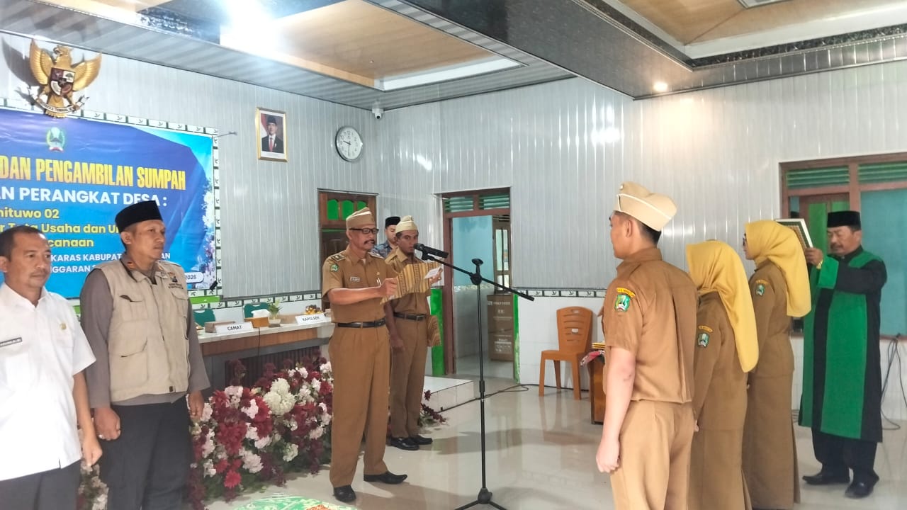 Media Central, Magetan – Terpilihnya nama Muhammad Mustofa Agil sebagai perangkat desa baru jabatan Kamituwo 2, dan Nur Amal Fadilah, Spd membawa jabatan Kaur Tata Usaha dan Umum, serta Putri Rizki Larasasti, Spd sebagai perangkat desa baru jabatan Kaur Perencanaan yang telah melalui proses dan produser yang berlaku, Rabu (21/1/2026) resmi dilantik dibalai pertemuan desa Ginuk Kecamatan Karas Kabupaten Magetan Jatim.