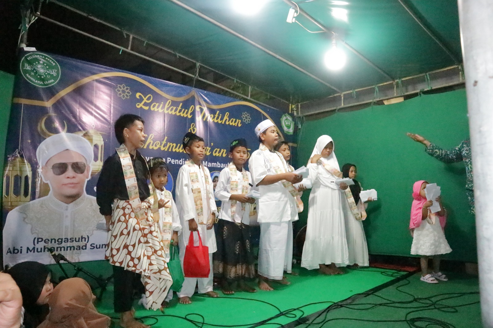 Kegiatan Lailatul Imtihan dan Khotmul Qur’an ke-5 Yayasan Pendidikan Mambaul Ilmi ditutup dengan doa bersama dan lantunan shalawat Nabi Muhammad SAW, sebagai ikhtitam acara sekaligus harapan agar para santri kelak tumbuh menjadi generasi yang shalih–shalihah, berilmu, beradab, peduli sosial, serta membawa keberkahan bagi umat, bangsa, dan negara.