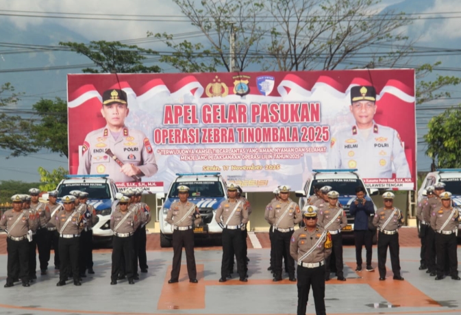 Media Central, Palu – Polda Sulawesi Tengah (Sulteng) menggelar Apel Gelar Pasukan Operasi Zebra Tinombala 2025 di lapangan Mapolda Sulteng, Senin (17/11/2025). Kegiatan ini menjadi tanda dimulainya upaya penguatan keamanan, keselamatan, ketertiban, dan kelancaran lalu lintas (Kamseltibcarlantas) jelang Operasi Lilin 2025.