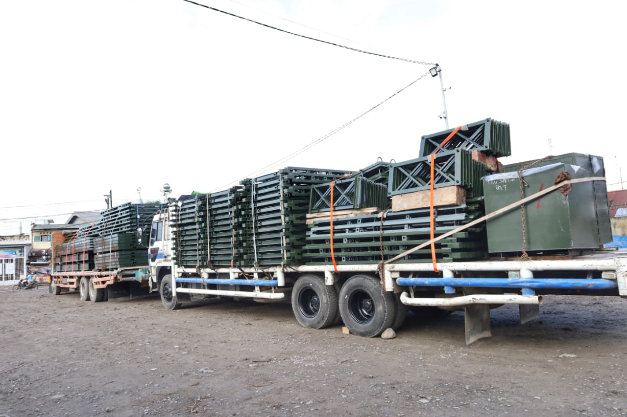Di lokasi, Pangdam menyaksikan proses pemindahan dan pengangkutan material ke atas truk sekaligus pelepasan pergeseran menuju titik pembangunan. Pemeriksaan dilakukan secara menyeluruh guna menjamin tidak ada komponen yang hilang, tertukar, maupun kurang sebelum diberangkatkan.