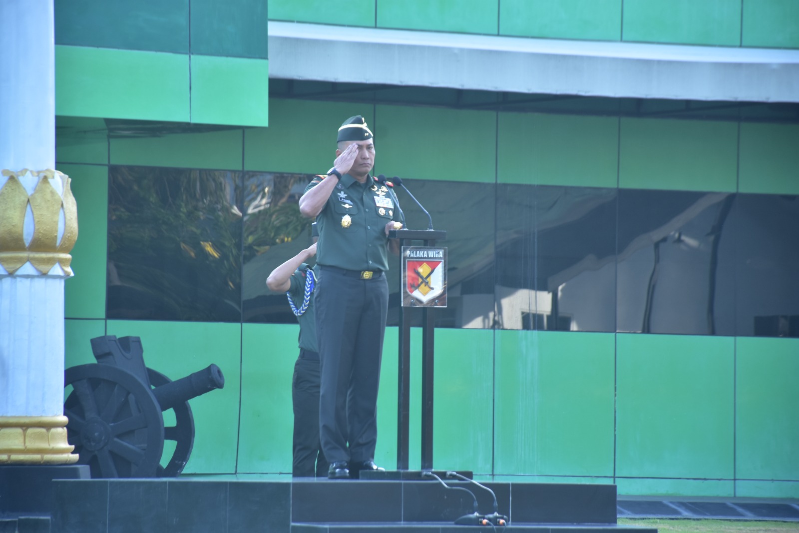 Upacara tersebut diikuti oleh seluruh Pejabat Utama (PJU), prajurit, serta Pegawai Negeri Sipil (PNS) Kodam XXIII/Palaka Wira dengan khidmat dan tertib.