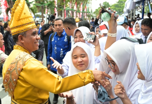 “Hari ini ibu berulang tahun. Maka sebagai anak, mari kita memberikan yang terbaik bagi ibu kita. Ini adalah panggilan moral bagi setiap individu untuk bersatu dan bergotong royong,” tegas Anwar Hafid di hadapan para peserta upacara.