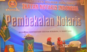 “Ini menjadi catatan serius karena dapat menurunkan marwah profesi notaris,” ujarnya. Dengan jumlah sekitar 3.300 notaris di Jawa Timur, ia mengingatkan bahwa persaingan semakin ketat sehingga diperlukan sikap guyub rukun untuk membangun kejayaan bersama.