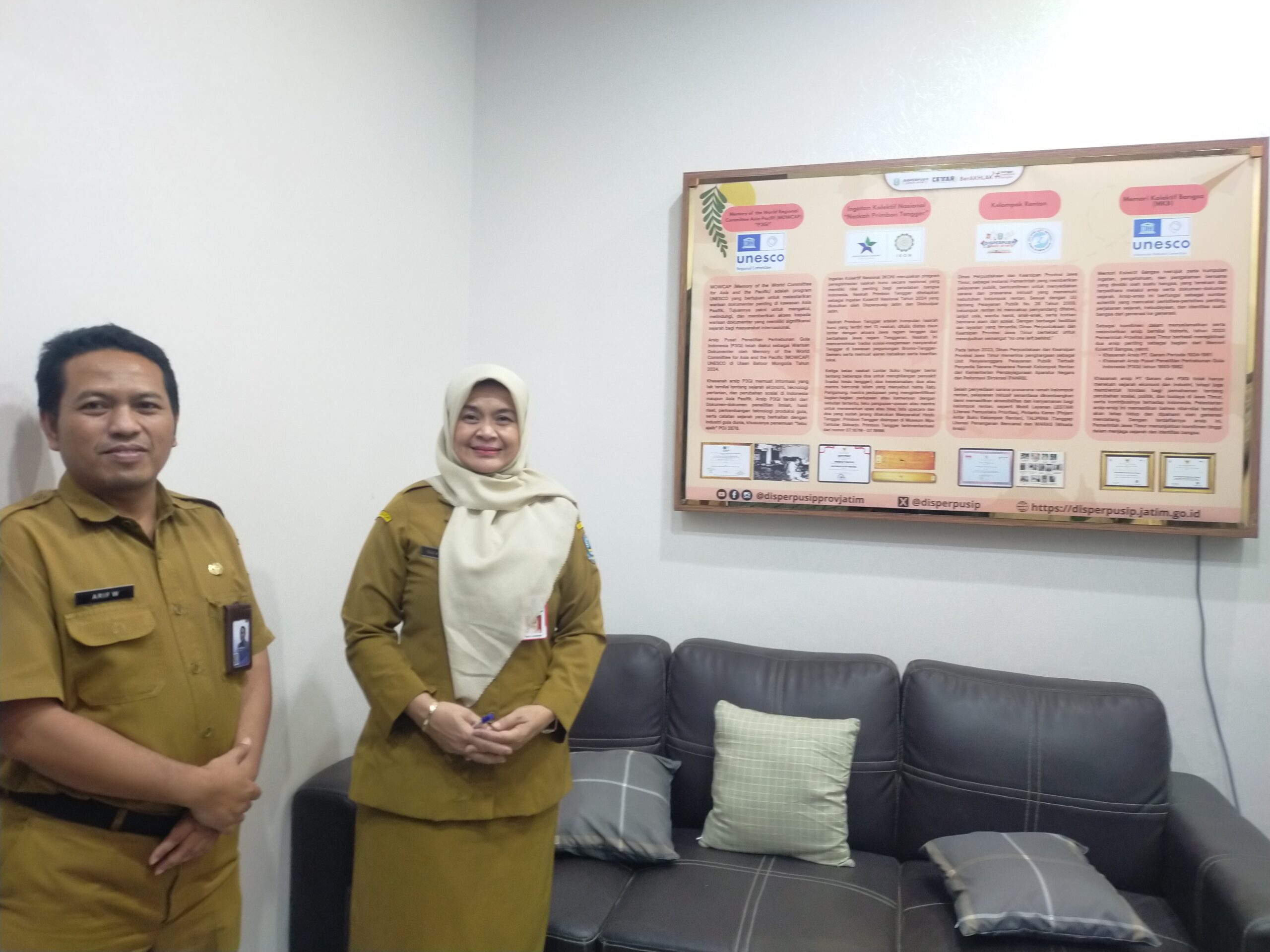 Selain itu, Perpusip Jawa Timur juga mencatat prestasi melalui penetapan “Naskah Primbon Tengger” sebagai Ingatan Kolektif Nasional (IKON) tahun 2024. Naskah tersebut dinilai memiliki nilai penting bagi peradaban bangsa karena merekam kearifan lokal masyarakat Tengger, mulai dari tradisi, pengobatan, hingga nilai-nilai budaya yang diwariskan secara turun-temurun. Penghargaan yang sama pada tahun 2025 juga diperoleh untuk Naskah Babad Trunajaya