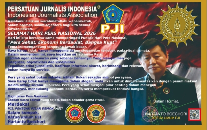 Ketua Umum Persatuan Jurnalis Indonesia (PJI), Hartanto Boechori, dalam pernyataannya menegaskan bahwa tema HPN 2026 mengandung tanggung jawab besar yang harus diwujudkan secara nyata, bukan hanya menjadi slogan.