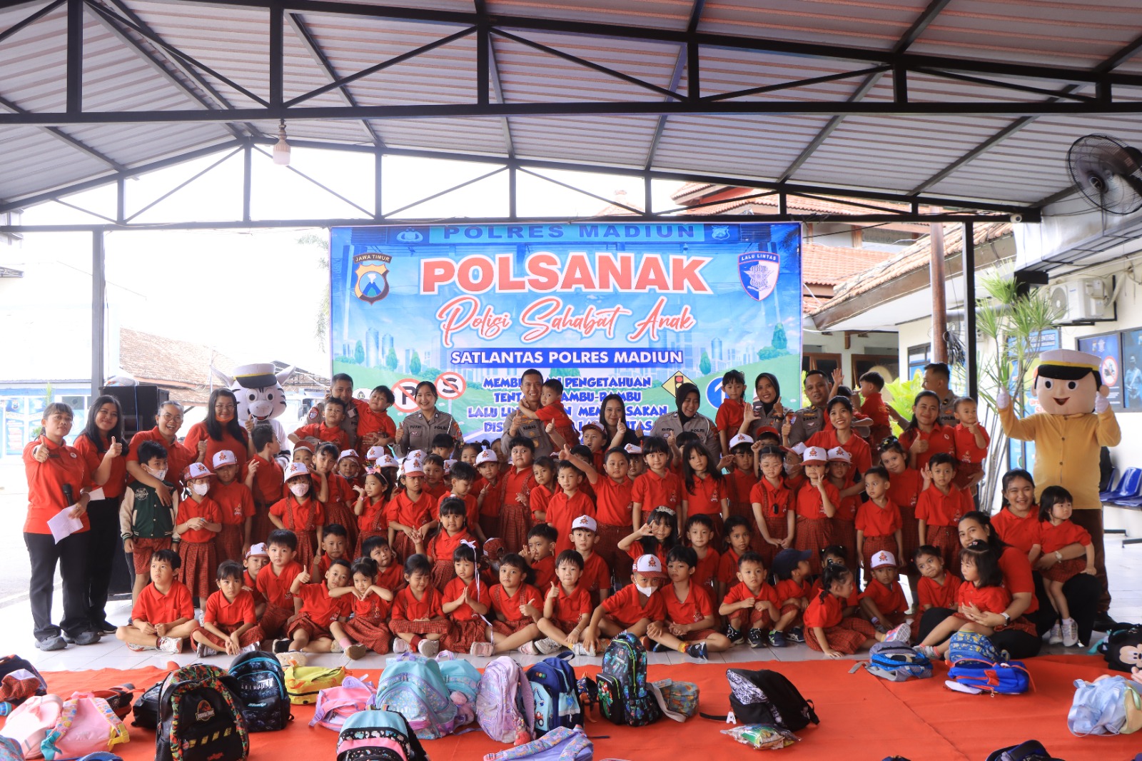 Kapolres Madiun dalam kesempatan tersebut menyampaikan bahwa kegiatan Polisi Sahabat Anak merupakan salah satu upaya Polri untuk membangun kedekatan dengan generasi muda sekaligus memberikan edukasi tentang keselamatan berlalu lintas sejak dini.
